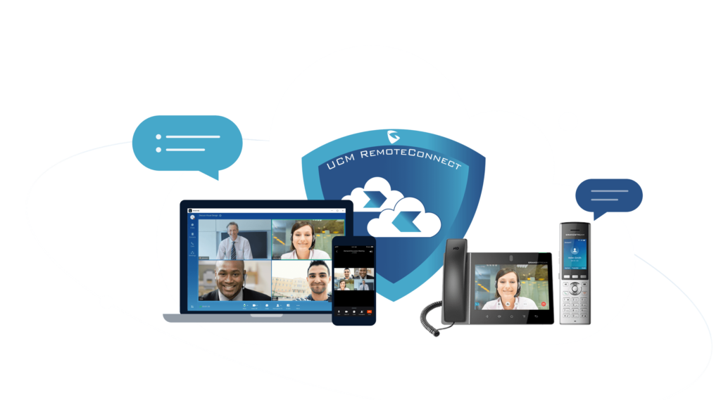 UCM RemoteConnect işletmelerin yerinde ve uzaktan tüm çalışanlar için kolayca güvenli bir iletişim ve işbirliği çözümü oluşturmasına olanak tanır.