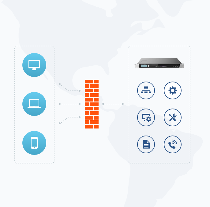 UCM RemoteConnect, çalışanların mobil ve masaüstü için Wave uygulamasının yanı sıra UCM6300 serisi IP PBX'e kayıtlı herhangi bir Grandstream uç noktasını kullanarak her yerden güvenli bir şekilde çalışmasına olanak tanır.UCM6300 Ekosisteminin bir parçasıdır.