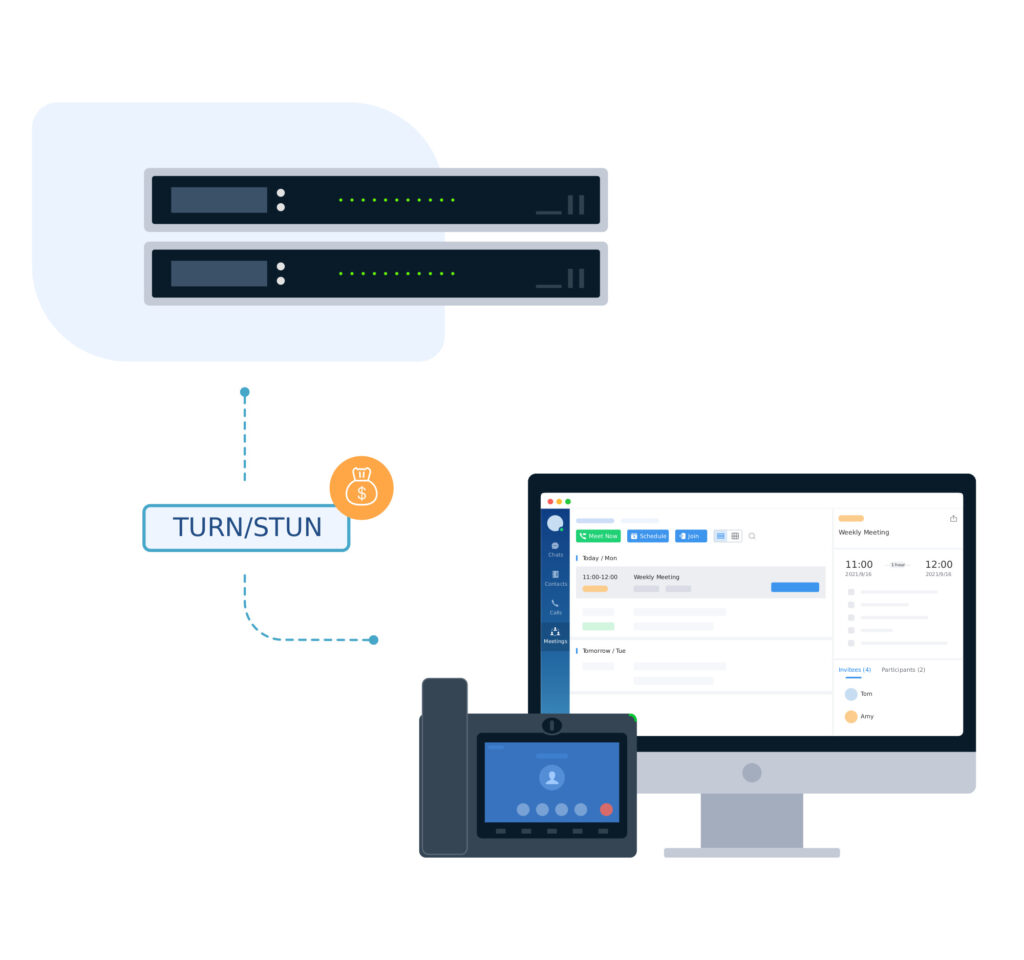 UCM'yi uzaktan iletişim için kurmak genellikle genel bir IP adresi ve bağlantı noktası eşleme gibi ağ yönlendirme kuralları gerektirir; bu da sistem ve ağ yöneticilerinin yardımı olmadan zor olabilir. UCMRC tüm bunları sağlayarak kullanıcıların minimum kurulumla uzaktan çalışma iletişimine başlamasına olanak tanır.