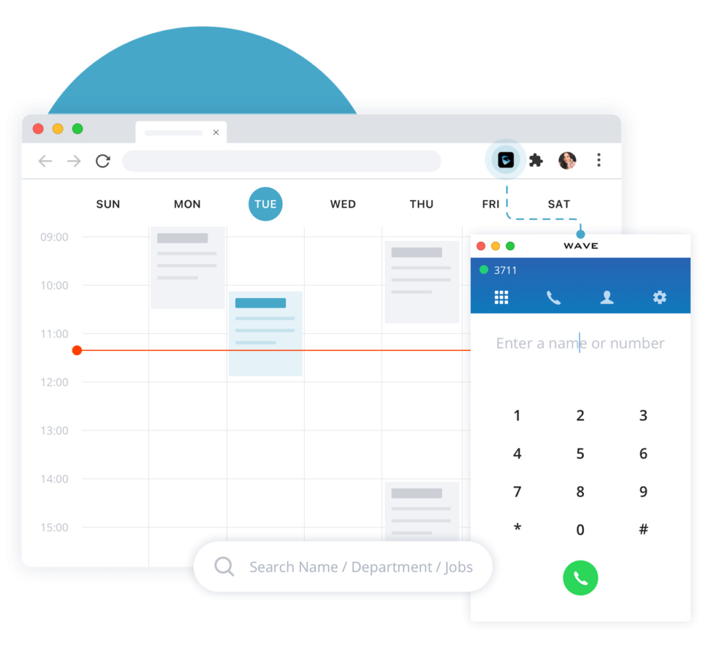 Chrome için Wave, kullanıcıların herhangi bir Chrome tarayıcı sayfasından Wave'e istedikleri zaman erişmelerine, tıklayarak arama yapmalarına, iş arkadaşlarınızı aramalarına ve arama yapmalarına, aramaları hızlı bir şekilde yanıtlamalarına ve çalışma verimliliğinizi artırmalarına olanak tanır.